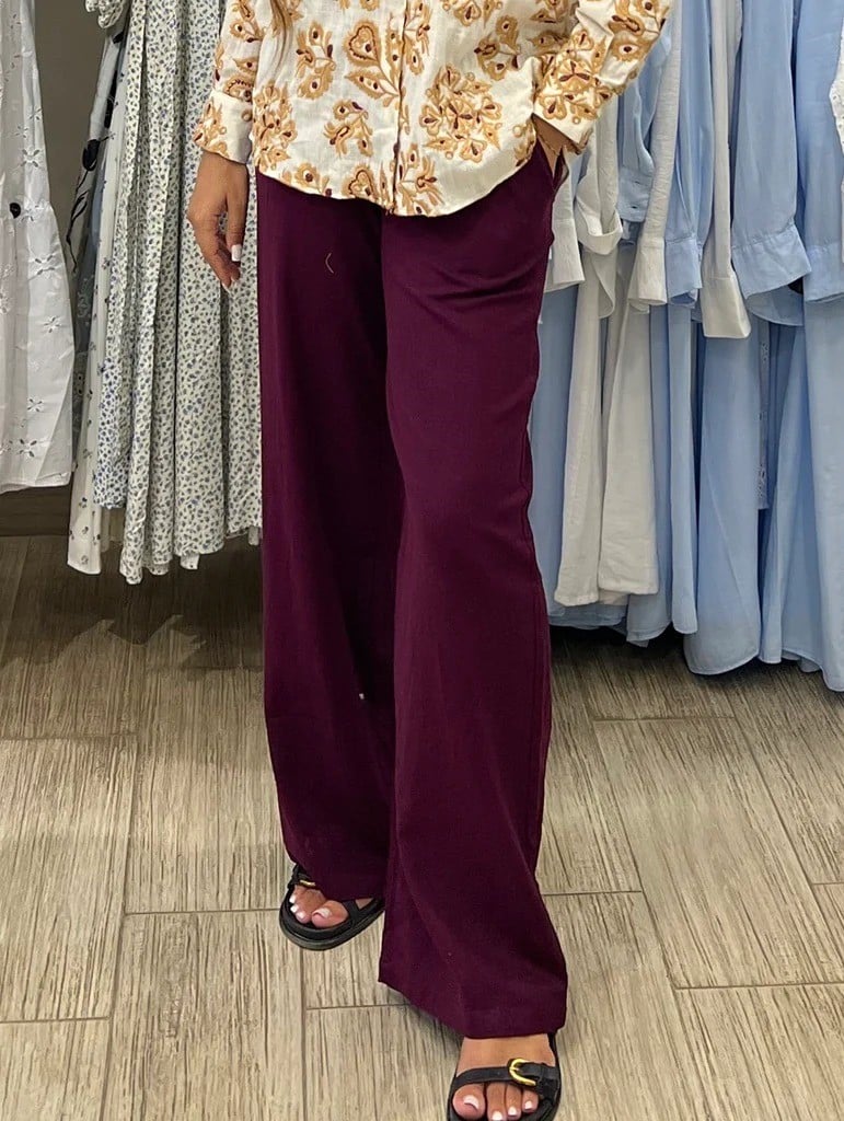 The relaxed linen design offers comfort, breathability, and a flattering natural drape. The bordeaux color adds depth and sophistication, making these pants easy to dress up or down for multiple occasions.