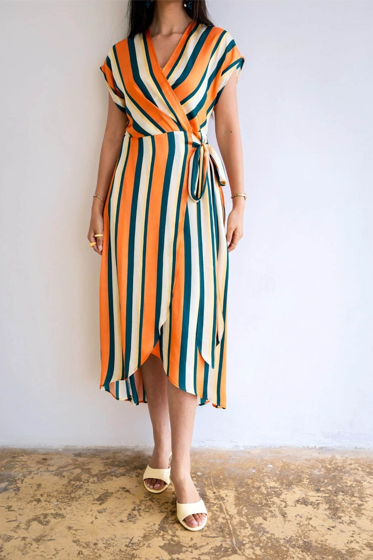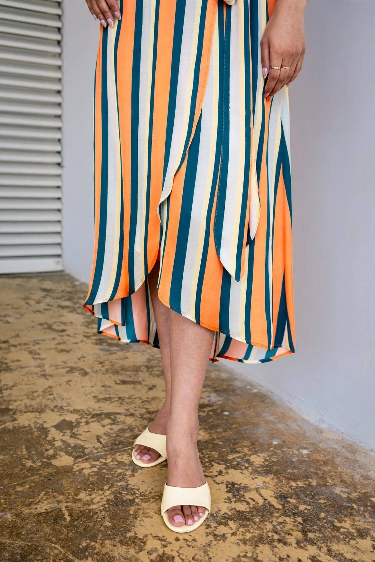 Bright, cheerful, and full of summer charm — the Sunset Garden Striped Summer Dress brings a lively mix of orange, green, and white stripes for a fresh, eye-catching look. Designed in a lightweight, breathable fabric, this dress is perfect for warm days, outdoor brunches, beach walks, or casual outings. The relaxed silhouette provides all-day comfort while the vibrant colors add a playful touch to your wardrobe. Easy to wear, easy to style — a true summer essential.