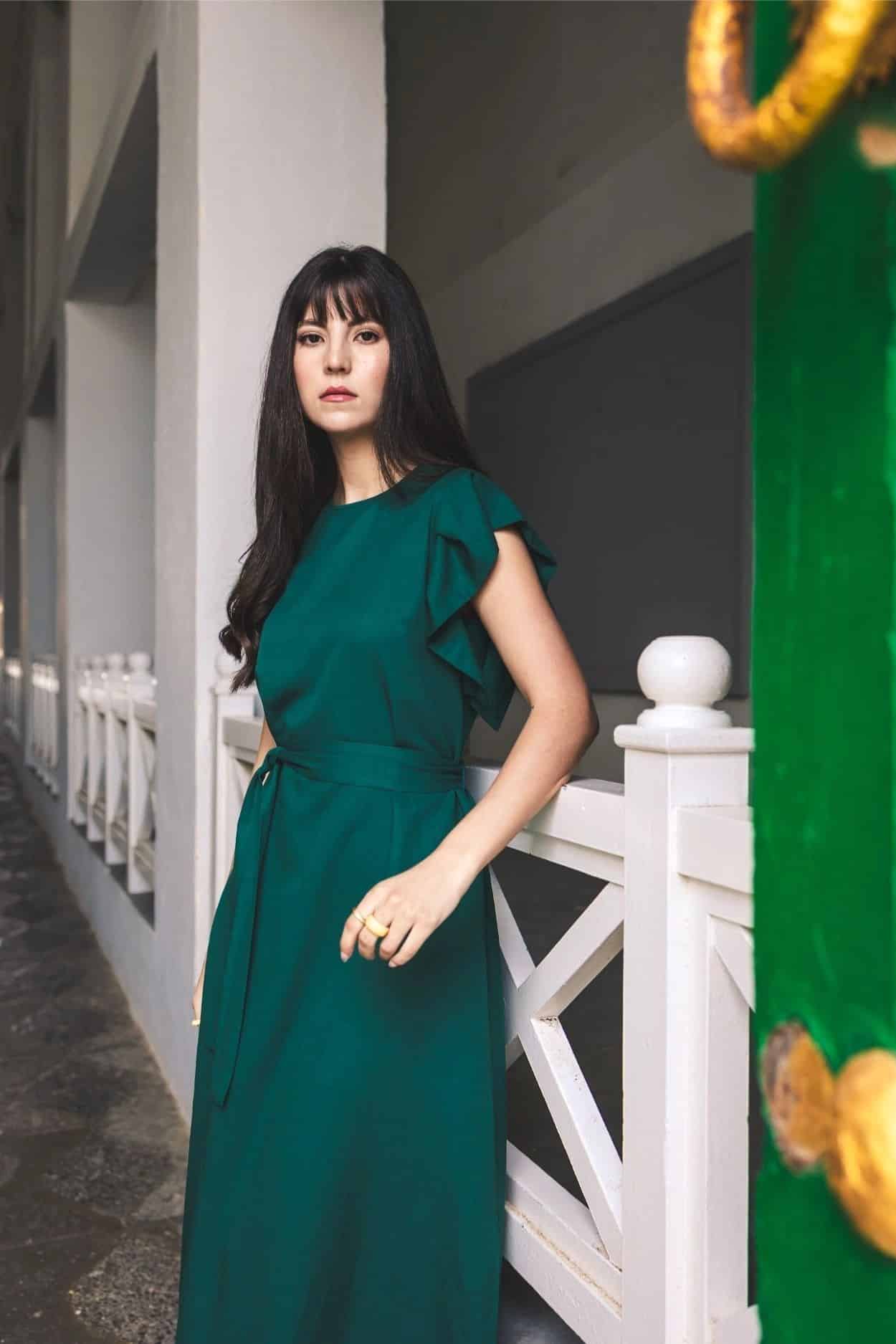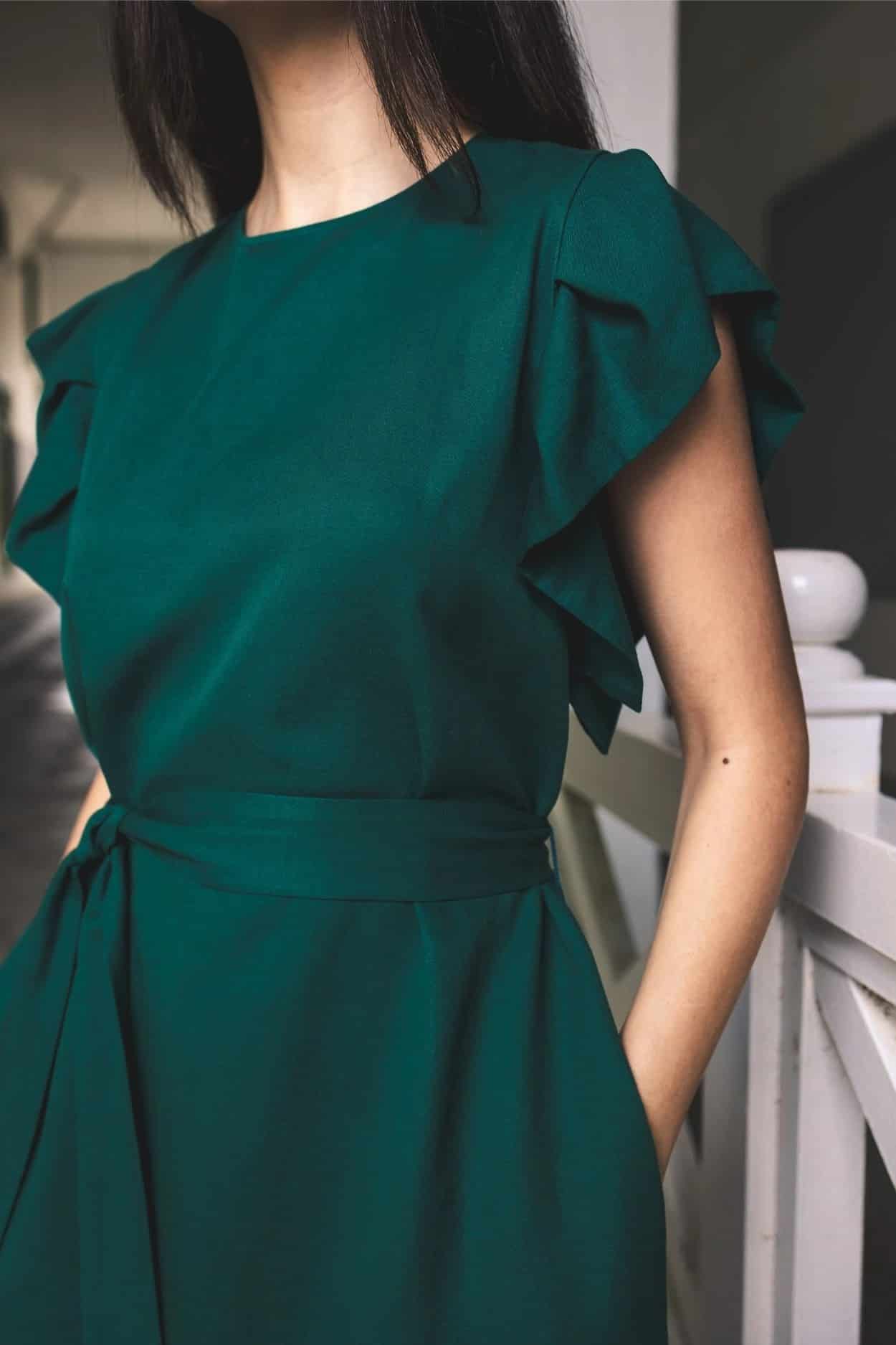 The dress features a comfortable, modern silhouette that adapts easily to different body shapes. Its clean design and elegant green tone make it versatile for multiple occasions without looking too formal or too casual.